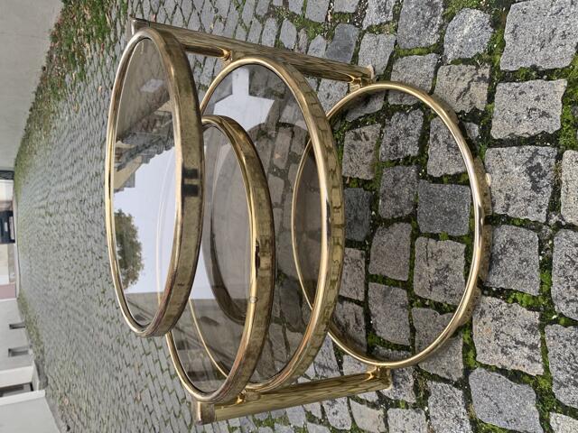 dreistufiger, schwenkbarer Tisch, Messing, Standort München-Westend